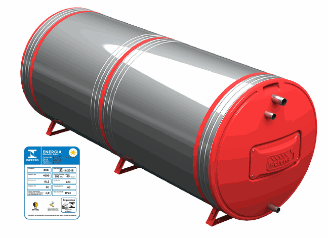 O boiler heliotek recebe e acumula a água quente que vem dos coletores solares.